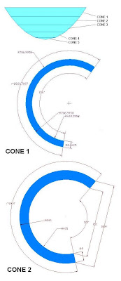 Sribe to the steel sheets. Cut but leave 5 mm on outer cirlce. Solder all together. Solder 5 mm diameter wire on outer circle of cone 1 to reinforce and stiffness and remove sharp edge.